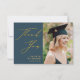 Elegant Gold Script Dusty Blue Minimalist Photo Graduation Thank You Card. Give Wow 'Thanks' to your family and friends with this beautiful thank you card. All the texts are pre-arranged for you to personalise easily and quickly with your own words.