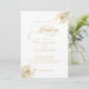 Elegant gold script floral wedding invitation. Looking for the perfect invitation card to share your great news? Get your copy of this gorgeous card decorated with beautiful gold watercolor florals (front and back of card), complementary elegant script lettering and delight your family, friends and loved ones. Easy to customise. Get yours today!