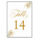 Elegant Gold Script Floral Wedding Table Number Set. Look no further for your perfect floral wedding table numbers to make your special day shine. Your wedding table numbers give guests a glimpse of your wedding theme, so make it count. You already have enough on your plate. No need to make any changes or edits to these table numbers. Just put them in your cart and you are all set to go. Get yours today!