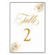 Elegant Gold Script Floral Wedding Table Number 2