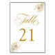Elegant Gold Script Floral Wedding Table Number Set. Look no further for your perfect floral wedding table numbers to make your special day shine. Your wedding table numbers give guests a glimpse of your wedding theme, so make it count. You already have enough on your plate. No need to make any changes or edits to these table numbers. Just put them in your cart and you are all set to go. Get yours today!