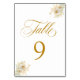 Elegant Gold Script Floral Wedding Table Number 9