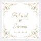 These elegant, vintage-inspired wedding stickers feature the names of the bride and groom in gold-coloured script font, framed by a delicate vintage gold vine motif. Add the wedding date below.