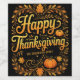 Craft the perfect finishing touch for your Thanksgiving feast with this customisable wine label. It features elegant, flowing script that reads "Happy Thanksgiving," framed by rich, autumnal foliage and two charming pumpkins. The warm gold and amber hues pop against a sophisticated black background, making it an ideal way to personalise bottles for your family gathering or to create a memorable hostess gift. Simply add your family name to the bottom, and you've got a unique keepsake that adds a heartfelt touch to any celebration.