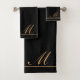 Personalised simple elegant gold script initial bathroom towel set. Refresh your bathroom decor with a minimalist typographic style.