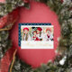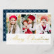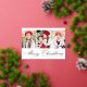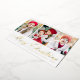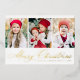 Simple Christmas card featuring three vertical photos with "Merry Christmas" displayed in a festive gold foil calligraphy script. Personalise the front of the multi-photo Christmas card with your family name and the year. The card reverses to display a modern navy and white plaid pattern.