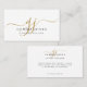 An elegant gold script monogram content creator business card template designed for professionals who want a clean, personal branding style. The design features a flowing signature style monogram paired with simple serif typography, creating a polished look that keeps the focus on the name and profession. The gold script lettering adds a modern, signature feel while the layout remains clear and professional. A good fit for content creators, bloggers, digital creators, and social media professionals who want a stylish monogram card for networking, collaborations, media events, and everyday professional introductions.