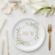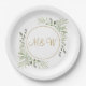 Elegant Gold Script Monogram Initials Greenery Paper Plate