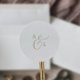 These elegant gold script monogram wedding envelope seals are perfect for a simple wedding. The minimalist gold and white design features fancy romantic typography with modern glam style. Customisable in any colour. Keep the design minimal and classy, as is, or personalise it by adding your own graphics and artwork. Personalise the label with the names of the bride and groom.