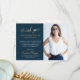 Elegant Gold Script Navy Blue Graduation Photo Tha Thank You Card