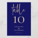 Elegant Champagne Gold Script Navy Blue Names Date Table Number. Modern simplicity with this text design. With a stylish set script for Table and easily personalize the rest of the text. The font colors can be changed via the edit menu. You can also change background colors on either side if you wish. Add each number separately to your cart.