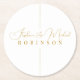 Elegant Gold Script Personalised Monogram Wedding Round Paper Coaster. Easy to customise.