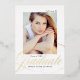 Celebrate your graduate’s milestone with this elegant graduation announcement, featuring a stunning senior photo framed by "Graduate" in gold foil modern calligraphy script. This sophisticated design allows you to personalise the announcement by adding the graduate’s name, school name, and graduation year, making it a truly unique and meaningful keepsake. Perfect for high school or college graduates, this photo graduation announcement exudes style and class, offering a timeless way to share this special achievement with family and friends.