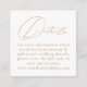 Allow guests to easily find more information about your wedding with these modern QR code wedding details enclosure cards. The elegant wedding details card displays "Details" in a gold calligraphy script contrasting with a white background. Personalise the card with your wedding website address and custom text. The back of the gold wedding details card features a QR code for guests to scan for information about hotel accommodations, directions, dress code, online RSVP, etc.