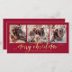 Elegant Gold Script Red 3 Photo Collage Christmas Holiday Card