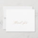 This elegant gold script thank you card is perfect for a simple wedding. The minimalist gold and white design features fancy romantic typography with modern glam style. Customisable in any colour. Keep the design minimal and classy, as is, or personalise it by adding your own graphics and artwork. Personalise the back of the card with your names, and a thank you message. Alternatively, leave the thank you message template section blank to hand write a personalised note on each card after they arrive. These cards can be used for a wedding, bridal shower, or any special event.