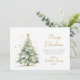 Elegant Gold Script Watercolor Christmas Tree Holiday Card
