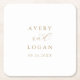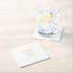 This elegant gold script wedding favour square paper coaster is perfect for a simple wedding. The minimalist gold and white design features fancy romantic typography with modern glam style. Customisable in any colour. Keep the design minimal and classy, as is, or personalise it by adding your own graphics and artwork. Personalise the label with the names of the bride and groom and the wedding date.