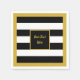 Elegant Gold Script with Black and White Stripes Napkin