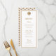 Refined and timeless, this wedding menu card features an elegant gold seashell accent and classic type layout. Perfect for coastal or destination weddings with a sophisticated theme. Personalise with your names and menu selections for a polished tabletop detail.