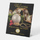 Elegant Gold Silver Black Corporate Holiday Party Pedestal Sign