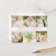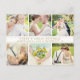 Elegant and warm, this six-photo collage thank you postcard features a gilded centre band with the couple's customisable names, wedding date, and location displayed in gleaming gold typography. The structured photo grid layout beautifully showcases multiple moments from your wedding day while the gold accents add a luxurious finishing touch. A stunning keepsake option for couples with a classic or glamourous wedding aesthetic.