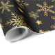 Elegant Gold Snowflake Black Background Xmas Snow Wrapping Paper