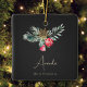 Bring contemporary style to your Christmas tree with this square ornament in a modern black variant. Featuring hand-painted style pine greenery, golden sprigs, and red ornaments on a snowy backdrop, it blends Scandinavian simplicity with cosy holiday charm. Personalise for a unique keepsake or thoughtful gift.