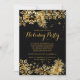 Modern Gold Snowflakes & pine tree branches Holiday Invitation set on a classic black background. Flip our chic holiday invitation over to view a festive matching back for an extra special touch. Beautiful invitation for a office party, company party, dinner party, christmas party, holiday party or any special occasion winter get together celebration.