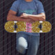 Fun party vibe, gold sparkling glitter skateboard - text is customisable and design is transferable-