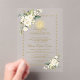 These Premium Acrylic Invitations (Clear or Frosted) are perfect for creating lasting, exquisite impressions. Elegant card design featuring watercolour delicate white flowers and green leaves, faux gold glitter broken sparkles frame, faux gold shining chalice, cross. Use Personalise tool to add your info. More ideas in my Acrylic Floral Wedding Collection