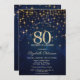 Elegant Gold Stars Navy Blue 80th Birthday Party Invitation