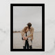 Elegant gold stripe initials black overlay photo wedding with a modern elegant script font, add your photo at the back with real gold foil.