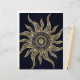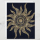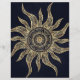 Magical gold sun mandala and sun wavy rays mandala summer design, beautiful sunshine mandala filled with yellow and brown faux gold glitter flowers, leaves doodles, dots, circles, various shapes, a mermaid scale, geometric wavy rays, and a centred mandala flower, celestial universe nebula evening blue sky galaxy stars, the night sky, dark blue nebula background. This unique mystical sun mandala, stylish henna mandala original art, represents the universe, life, and positive energy.