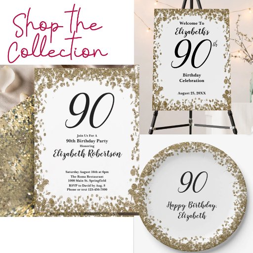 90th Birthday Gold Sequins Birthday Designed by Kara Buntin