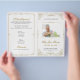 Easy to use elegant gold swirl themed funeral program template, with editable photo and text.