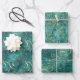 Elegant Gold Swirl Pattern on Turquoise Background Wrapping Paper Sheet