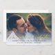 This save our date wedding card begins with your couple's photo. Save our date is written below in an elegant script photo. Two lines of text let you personalise your request. A special transparent overlay assures that you will be able to see the text, regardless of the colours in your photograph. There are two additional lines of text on the save our date back that you can customise.