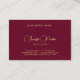 Elegant Modern Professional Gold Text Calligraphy Script Name Simple Design Template Ruby Red Euro / Europe / European Size Premium Silk Luxurious Business Cards. Ideal for Beauty Salon Owners, Makeup Artists, Hair Stylists, Real Estate Agents, Accountants, Realtors, Brokers, Attorneys, Lawyers, Corporate Professionals, Stylists, Architects, Engineers, Directors, Managers, Consultants, Designers, all professions.
