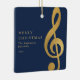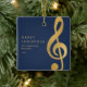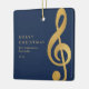 This simple and elegant musical Christmas ornament features a gold treble clef on a blue background. Perfect for music ensembles, choirs, teachers, and music lovers. Personalize it with your own custom text.