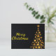 Elegant Gold Tree Merry Christmas on Black Postcard
