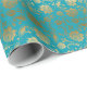 Elegant Gold & Turquoise Floral Pattern Wrapping Paper