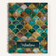 Elegant gold turquoise green girly mermaid scales Notebook. To make it extra special, it is also monogrammed and personalised with name or initials or any text you like, click the "customise further" link and use the design tool to modify the design if you like.