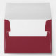 This elegant wedding envelope features a minimalist design with a rich maroon background and gold typography. The layout is clean and centred, showcasing the names and address in a sophisticated serif font that exudes luxury and formality. Perfect for weddings or significant announcements, this design emphasizes simplicity and elegance, making it ideal for those who appreciate classic yet modern aesthetics.