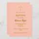 Elegant Gold Typography Cross Baptism on Pink Invitation