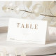 Elegant wedding table number place card featuring "Table" in classic gold typography and blank lines for you to fill in the table number and the name of your guest. On the back, add your first names and reception date.