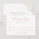 Add a touch of romance to your wedding suite with the Elegant Gold Victorian Floral RSVP Card. “Kindly Reply” appears in elegant calligraphy on the front, followed by your response date and guest reply wording. The reverse showcases your personalized names and wedding date surrounded by ornate Victorian floral corner bouquets, bringing a warm, European-inspired charm to your stationery.