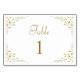 This elegant vintage-inspired wedding table number card features a gold-coloured botanical frame. The word "table" appears in script typography, with the table number below.