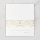 Escort place card includes an ornate decorative border design with a metallic champagne gold shimmer appearance. Print in bulk and fill out the guest names and table numbers by hand.