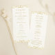 Elegant vintage inspired wedding ceremony programs in a flat tea-length panel style feature an ornate decorative border design with a metallic champagne gold shimmer appearance. Personalise the custom template with your wording details, and adjust text if needed using the "Customise It!" tool.